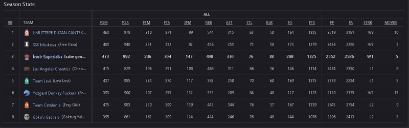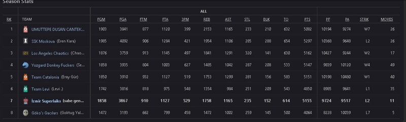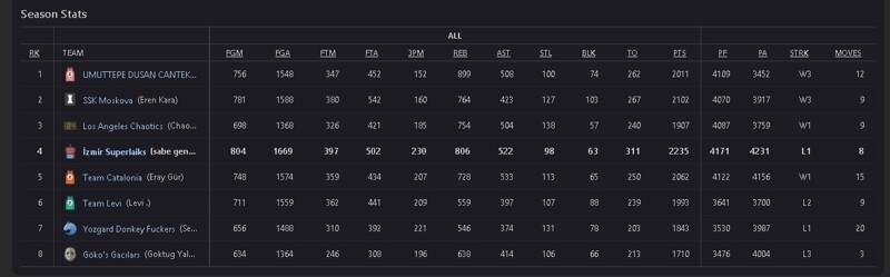 bence dengeli sayılabilir... - 8los angeles chaotics olarak "allah rakiplere acısın çünkü biz acımayacağız" mottosuyla sezona başlayacağımız ligdir.